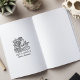 Este carimbo "Da Biblioteca de" contém uma coruja vintage sobre livros com flores e nome personalizado.