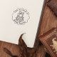 Este selo de borracha "Da Biblioteca de" apresenta um livro e um chá com um nome.