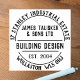 Arquiteto de borracha. Construindo Carimbo de Borracha Design. Nome da Empresa, Tipo de Negócios, mais Duas Linhas de Endereço em um efeito circular. Um carimbo de empresa para todos os tipos de artigos de papelaria, envelopes, embalagens, etc. Coloque seu endereço de retorno de forma fácil e elegante.