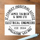 Carimbo de borracha para uma empresa de engenharia elétrica ou eletricista. Carimbo de Borracha de Engenheiros Elétricos. Nome da Empresa, Tipo de Negócios, mais Duas Linhas de Endereço em um efeito circular. Um carimbo de empresa para todos os tipos de artigos de papelaria, envelopes, embalagens, etc. Coloque seu endereço de retorno de forma fácil e elegante.