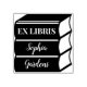 Um design Ex libris com uma pilha de três livros. Ex Libris no topo do livro com primeiro e sobrenomes personalizáveis nos volumes inferiores em uma fonte de script na moda. O design também pode ser personalizado adicionalmente, por exemplo, para acomodar nomes mais longos, etc.