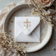 This rubber stamp combines delicacy and spirituality, ideal for Christian weddings looking for an elegant and meaningful detail in their stationery. The Christian cross, accompanied by fine flourish-style decorative elements, adds a sophisticated and symbolic touch, while the couple’s initials allow each impression to be personalized in a unique and intimate way.