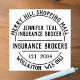 Carimbo de Borracha do Insurance Brokers. Nome da Empresa, Tipo de Negócios, mais Duas Linhas de Endereço em um efeito circular. Um carimbo de empresa para todos os tipos de artigos de papelaria, envelopes, embalagens, etc. Coloque seu endereço de retorno de forma fácil e elegante.