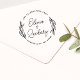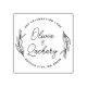 Carimbo circular moderno e rústico elegante apresenta folhagens em forma circular com letra cursiva e texto moderno.