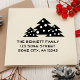 Carimbo de borracha de feriado com um endereço no roteiro moderno. O selo tem três árvores de Natal simples. O selo moderno é perfeito para o feriado de Natal. Personalize o endereço no carimbo. Use este selo para enviar mensagens aos seus amigos, família, colegas de trabalho... Faça seu selo pessoal de família de feriados.