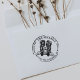 Este carimbo apresenta uma imagem personalizada de Borda Collie, com um nome e endereço da família.