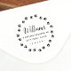 Retorna o carimbo de endereço com uma borda circular de impressão com seu endereço e sobrenome/nome da família em uma fonte engraçada e engraçada no meio