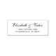 Um clássico e elegante carimbo de endereço de volta do casamento, com seus nomes em um roteiro preto formal e seu endereço na fonte sans serif.