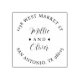 Experimente a elegância do casamento com o nosso endereço de volta redondo, carimbo de madeira! Imaginem os seus nomes num script gracioso, rodeado por detalhes de retorno. O design preto e branco apresenta uma tipografia de serifa minimalista única. Cada selo captura a essência do seu sindicato, subtilmente chamando a atenção. Pegue o seu agora e redefina o atrativo do seu casamento!
