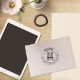 Este carimbo de "Endereço de devolução" contém um gato Korat com nome e endereço personalizados da família.