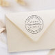 Carimbo de borracha redondo elegante com seus nomes e endereço de volta.