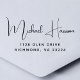 O selo de borracha de endereço de retorno elegante, com seu nome em um script de assinatura moderno de na moda e seu endereço em uma simples tipografia.