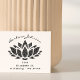 Este elegante selo floral apresenta uma flor de lótus, um símbolo importante para seguidores do budismo e praticantes de ioga. No topo, há o seu nome no guião manuscrito, num arco, e no fundo, o seu endereço de retorno, numa simples fonte moderna. Para personalizar este carimbo, basta clicar no botão "Personalizar".