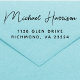 Um selo de borracha de endereço de retorno personalizado moderno, com seu nome em um script de na moda e seu endereço em uma simples tipografia.
