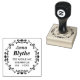 Adicione o seu nome pessoal ou profissional e os detalhes do endereço a este carimbo online e um belo carimbo personalizado de madeira ou pré-tinta será entregue à sua porta em qualquer lugar do mundo! Altere o texto do carimbo digitando o nome do exemplo e o texto do endereço na área personalizar (clique em DETALHES). Se quiser mover/redimensionar as coisas mais adiante, clique em PERSONALIZAR. Faça o seu próprio endereço de devolução personalizado aqui e agora online. Você tem a opção de um selo de autocolante ou um selo de madeira manuseado.