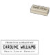 Carimbo de borracha com texto personalizável "da biblioteca de" e seu nome em fontes antigas, estilo de jornal vintage. Abaixo do seu nome está o texto mais personalizável "Leia-o - ame-o - devolva-o".
