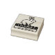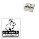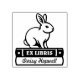 Um selo de borracha Ex Libris com um coelho sentado e guardando dois livros. Texto ex Libris no topo do livro com texto de nome personalizável no livro inferior no script na moda.