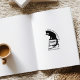 Este carimbo de borracha "Da Biblioteca De" apresenta um gato com livros e um nome personalizado.