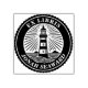 Um na moda Ex Libris design com um farol num mar ondulado. Círculo exterior preto com uma extremidade incitada, Texto em branco. Altere o nome para personalizar.