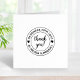Simples carimbo redondo com a mensagem Obrigado cercada por texto personalizável. Observe que talvez seja necessário ajustar as informações digitadas adicionando ou excluindo alguns caracteres para fazer o texto alinhado corretamente.