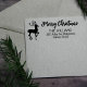 Este design de natal apresenta uma rena com nome de família e desejos de férias.