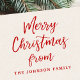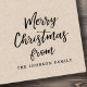 Carimbo de borracha com o texto Feliz Natal em caracteres elegantes e nome personalizado.