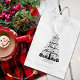 Este selo de borracha "Feliz Vegan Christmas" contém uma árvore de natal com presentes, uma mensagem e um nome de família personalizado.