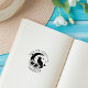 Este carimbo de borracha "Da Biblioteca De" apresenta um gato da lua mística com girassóis e um nome personalizado.