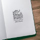 Este carimbo de borracha "Da Biblioteca De" apresenta um gato vintage em cima de livros florais com nome personalizado.