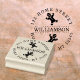 Um design de carimbo personalizado circular com dois gengers acima e abaixo do seu nome familiar e rodeado pelos detalhes do seu endereço. É ideal para adicionar um toque extra carimbado à mão aos seus cartões de natal. Projetado por Thisnotme©