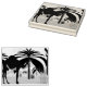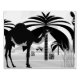 Esta região apresenta 2 camelos no deserto perto de algumas palmeiras.
