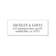 O endereço de retorno moderno é um selo de borracha com um design minimalista com seus nomes em uma fonte grande e negrito. Este simples carimbo de endereço de retorno é excelente de convites para casamento, correio pessoal ou correio comercial.