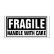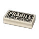 Carimbo de borracha com o texto "frágil, trate com cuidado".