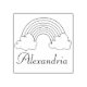 Meninas Personalizaram O Arco-Íris Com Carimbo De Borracha Para Crianças. Escolha entre três tamanhos de carimbos quadrados. Editar texto para personalizar, personalizar para alterar o estilo ou o tamanho da fonte. Crianças divertidas com gráfico arco-íris com nome por baixo. Um carimbo personalizado para as crianças rotularem coisas ou usarem para artesanatos.