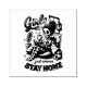 Design vibrante e colorido com um esqueleto feminino sentado numa cadeira confortável com seu gato, lendo um livro e segurando uma xícara de café. O texto colorido diz: "Meninas só querem ficar em casa". Esse design está disponível em uma grande variedade de produtos.