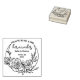 Este selo de borracha "Save the Date" contém uma flor de lua com apelido de casal e data de casamento.