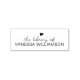 Modern and simple library stamp featuring your name in minimalist typography, ´´library of´´ text in handwritten script and a tiny heart above.