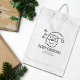Este selo de borracha "Feliz Natal" contém o santa claus, uma mensagem e um nome de família personalizado.