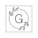 Esse bonito selo de borracha apresenta uma delicada coroa botânica ao redor de uma simples e elegante inicial.