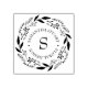 Este carimbo apresenta uma coroa botânica rustica e um monograma inicial, e enquadrado por duas áreas de texto personalizadas.