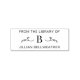 Este carimbo personalizado apresenta um design simples com detalhes clássicos. "Da biblioteca de" está escrito ao longo do topo, com um design de monograma abaixo. O nome está escrito na parte inferior.