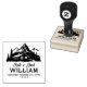 O Elegante Carimbo de Endereços de Retorno Redondo apresenta design de paisagem de montanhas e pinheiros desenhados manualmente para amantes de natureza selvagem e fontes clássicas de script. Personalize este belo selo de borracha com o seu nome e endereço hoje para dar ao seu correio normal um toque de estilo! Este selo também é perfeito para anúncios, cartões de natal, convites para casamento, e muito mais!
