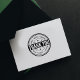 Este "Obrigado" multilíngue apresenta um nome de empresa e um site personalizados em um crachá em círculo.