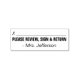 Este design de carimbo apresenta a solicitação "POR FAVOR, REVISAR, ASSINAR E RETORNAR", juntamente com uma linha de assinatura e um nome de professor personalizado. Pode ser usado por um professor, por exemplo, para solicitar que um pai ou um tutor reveja e reconheça a marca que uma criança recebeu em uma tarefa.
