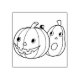 Um par de abóboras de desenho animado. Uma grande abóbora redonda está sorrindo, a outra abóbora alta é assustada por uma pequena aranha.