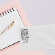 Este carimbo de "Endereço de devolução" inclui um gato dourado escocês com nome e endereço personalizados.