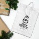 Este carimbo de "Feliz Natal" contém um pinguim, uma mensagem e um nome de família personalizado.