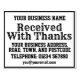 Carimbo de Borracha Recebido Com Agradecimento com Nome, Endereço, etc. Adicione o nome da sua empresa, endereço, número de telefone e e-mail.