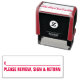 Este design de carimbo de tinta automática apresenta a solicitação "REVISAR, ASSINAR e RETORNAR", juntamente com uma linha de assinatura. Pode ser usado por um professor, por exemplo, para solicitar que um pai ou um tutor reveja e reconheça a marca que uma criança recebeu em uma tarefa.
