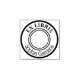 Um design de selo de borracha Ex Libris, com um simples design redondo e uma letra curvada.